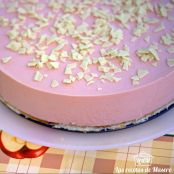 Por último, echaremos la mezcla encima del molde que ya tiene la base de bizcocho genovés en su interior. Meteremos en nevera para que cuaje, al menos durante 4 horas o de un día para otro. No hace falta gelatina para que cuaje puesto que las nubes ya tienen gelatina.