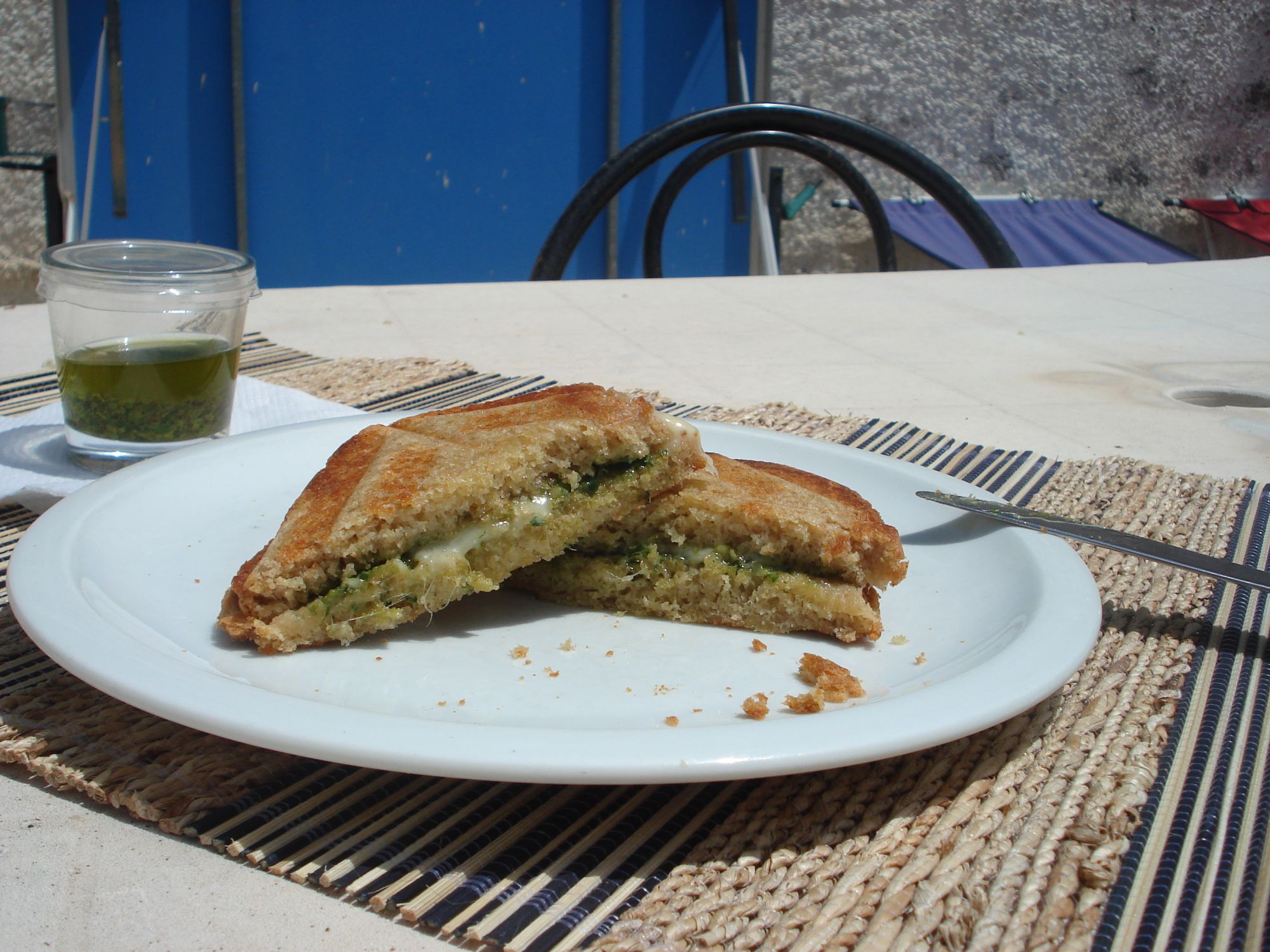 Sandwich de pesto de albahaca con queso São Jorge (Islas de Azores)