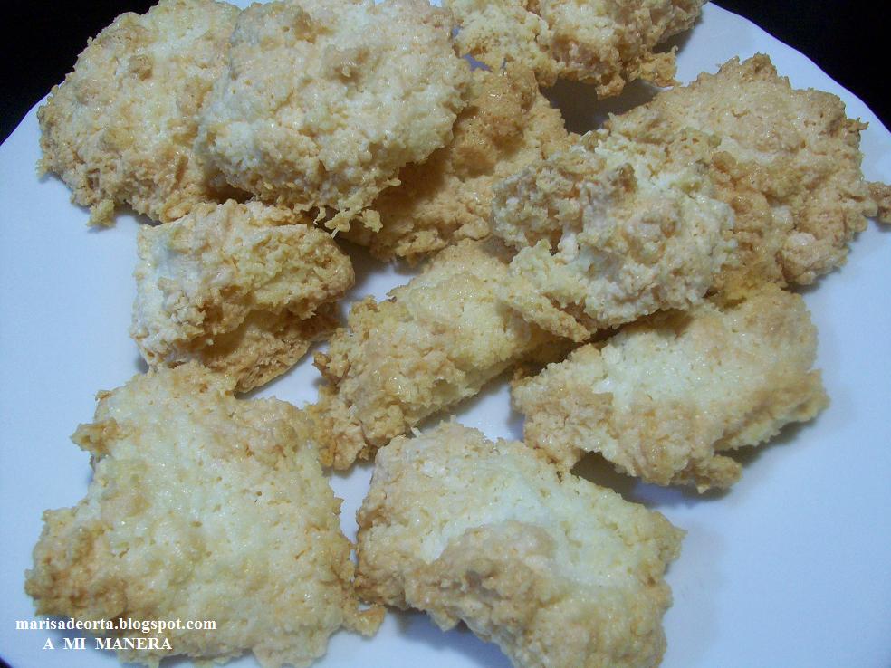 - Cubrir una bandeja de horno con papel de hornear o una lámina de silicona, e ir colocando montoncitos de masa de forma que queden piquitos.- Bajar el horno a 150°, introducir la bandeja y dejar cocer hasta que se doren los piquitos.- Dejar enfriar antes de comer.