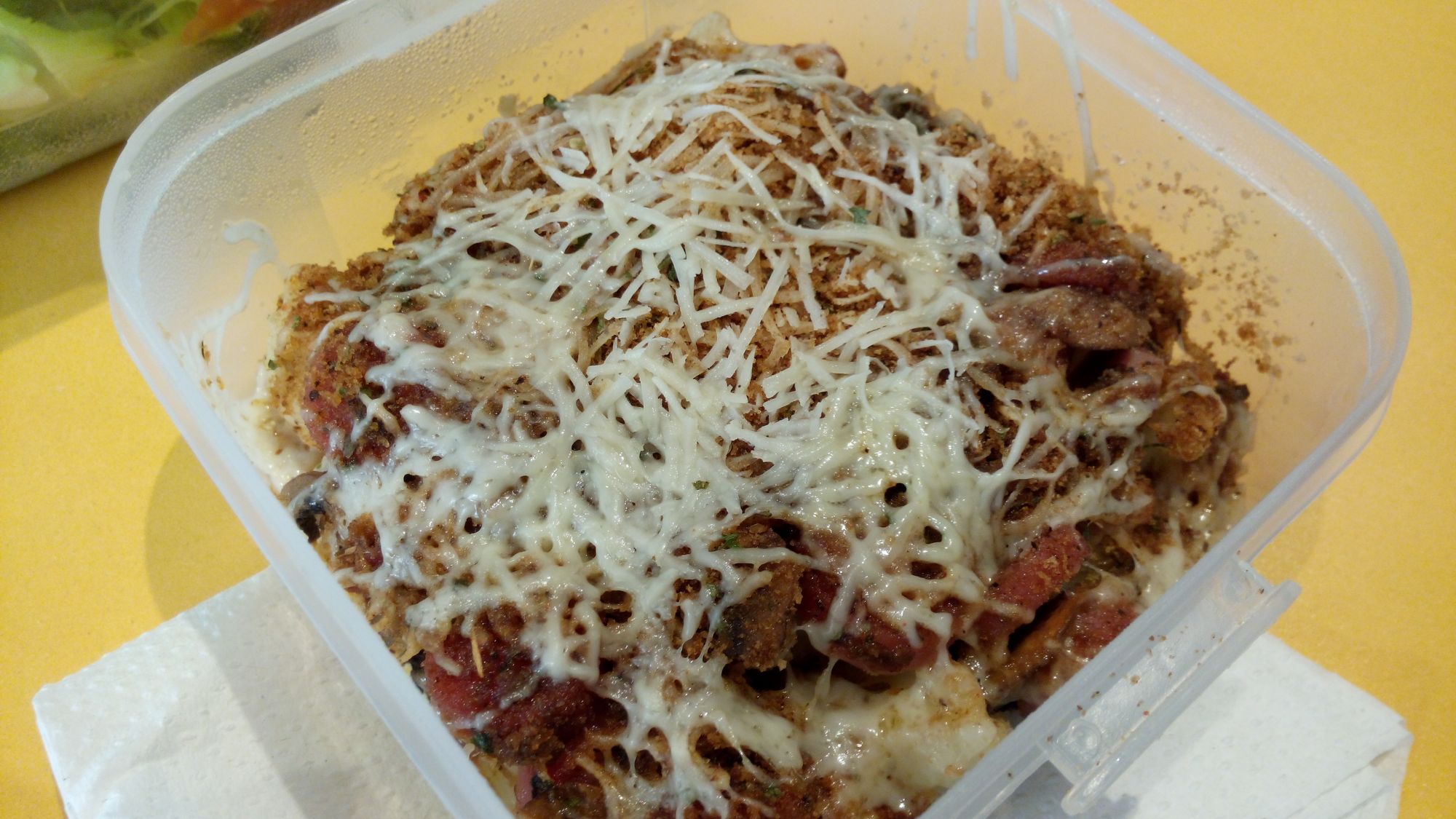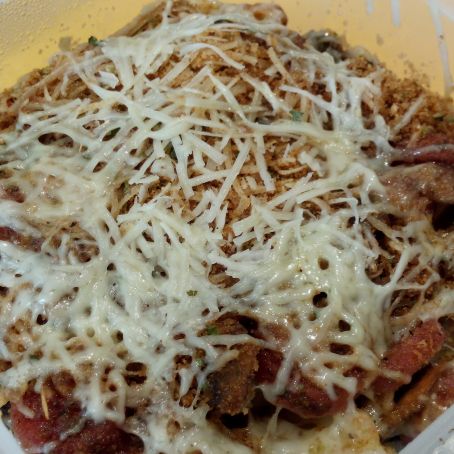 Introduce al horno durante 10-15 minutos, o hasta que veas el queso derretido y el pan molido dorado.