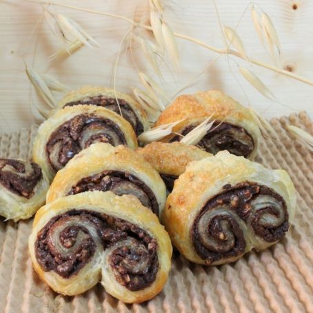 Unas deliciosas palmeritas rellenas de chocolate y almendra que se hacen rápidamente y quedan estupendas para una merienda o desayuno.