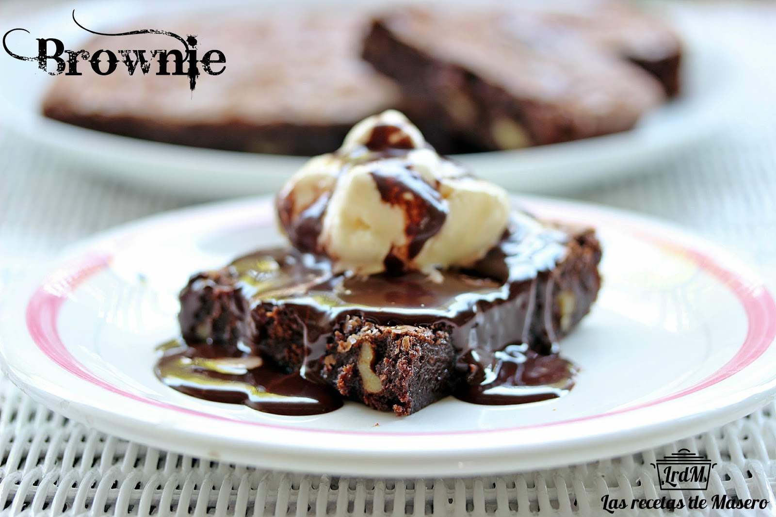 Los chocoadictos (como nosotros) hoy estáis de enhorabuena. Seguro que a todos, cuando pensamos en una receta de chocolate, nos viene a la cabeza el brownie, si no es en primer lugar, seguro que en segundo o tercero. Con esta receta conseguireis el típico brownie que habréis comido en cualquier típico restaurante americano o mismamente en el VIPS, con una textura húmeda, compacta y con un intenso sabor a chocolate. Si además lo servis con una bola de helado de vainilla y chocolate caliente, el éxito está asegurado. Sólo con escribir el post ya se me está haciendo la boca agua :P