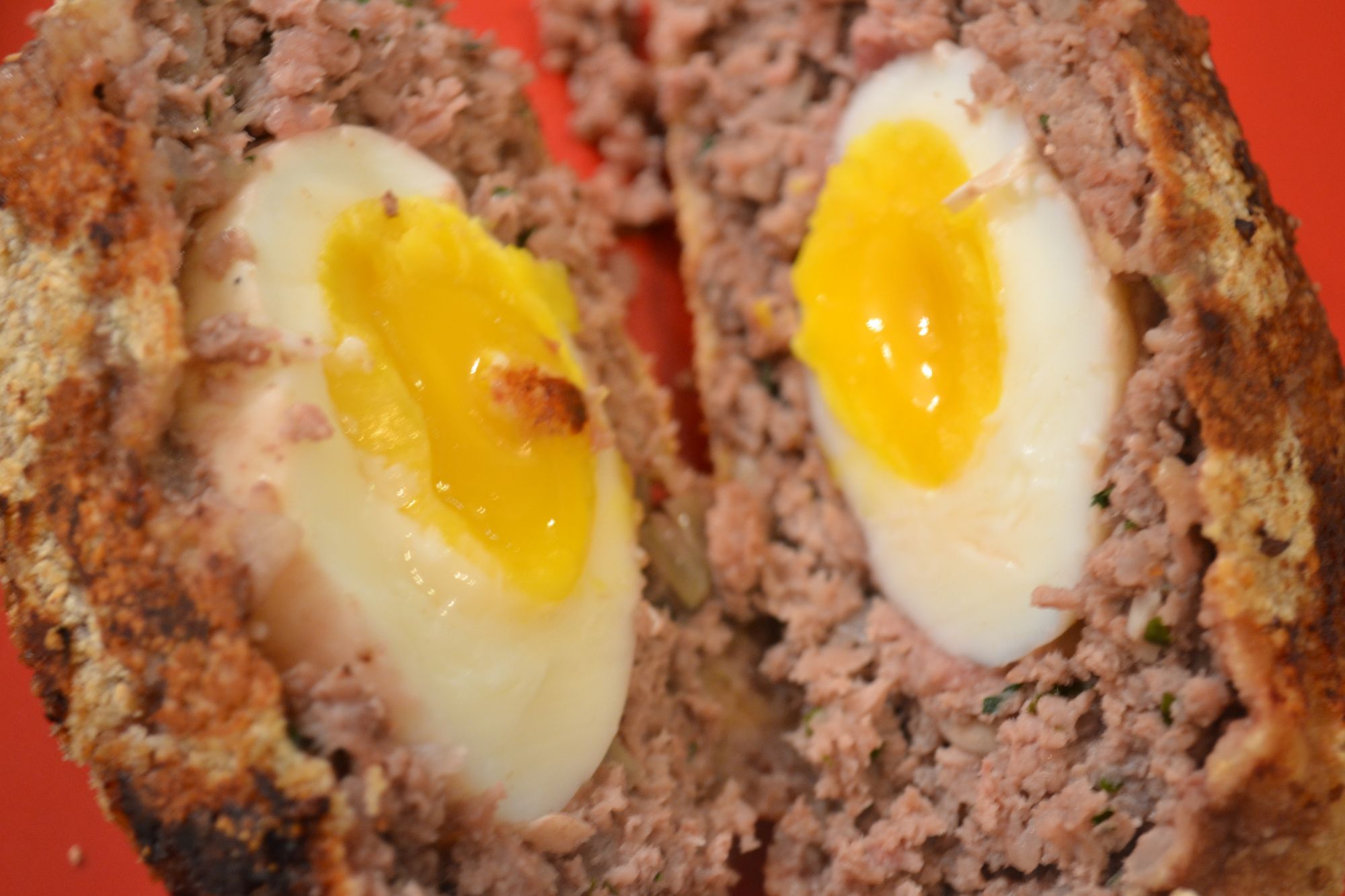 Enharinar el huevo y apoyarlo sobre la carne y envolver.