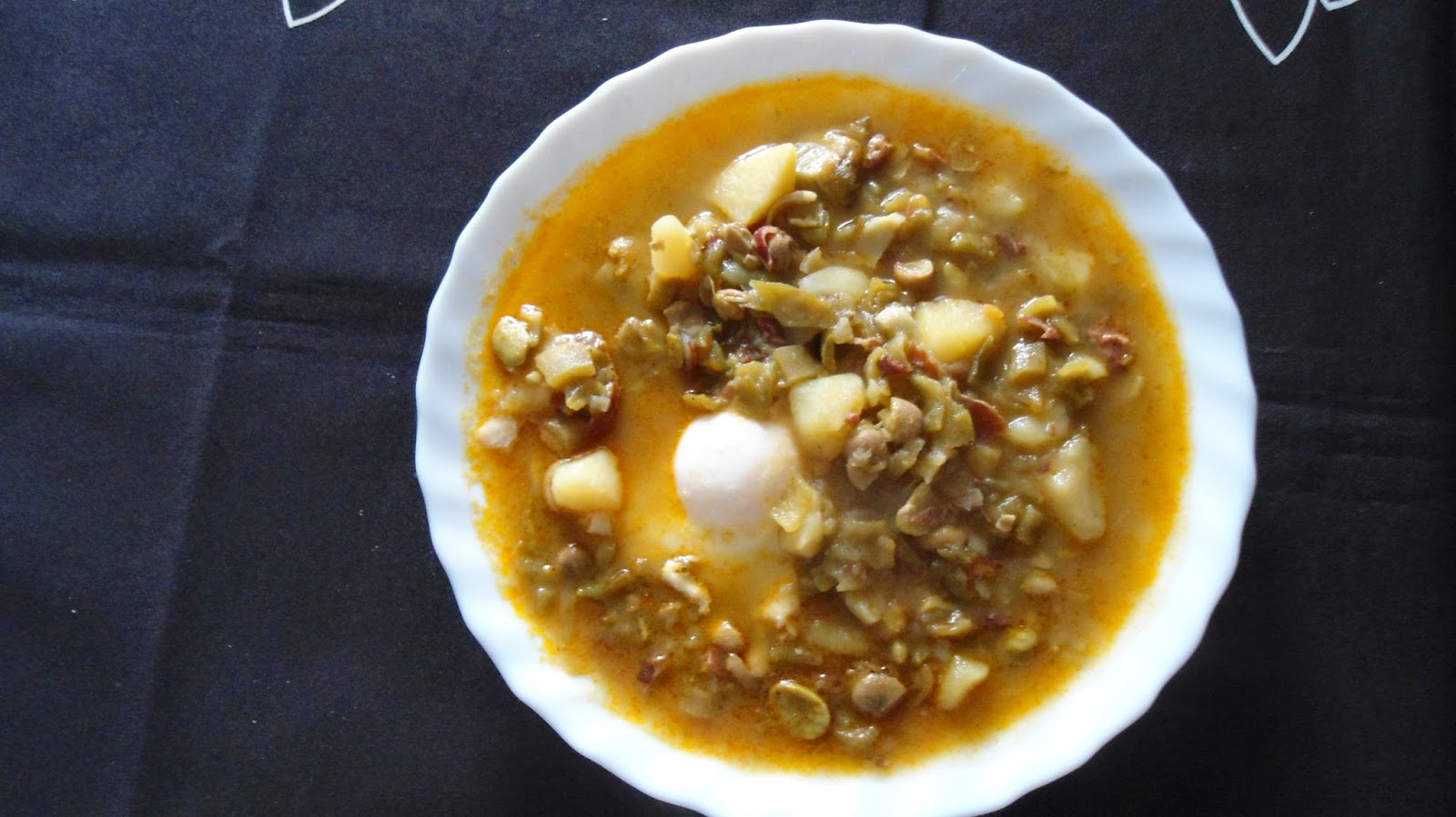 Los huevos se cuajan aparte para que no espese mucho el guiso (se pone agua con un poquito de vinagre se echa el huevo y se deja que cuaje.)