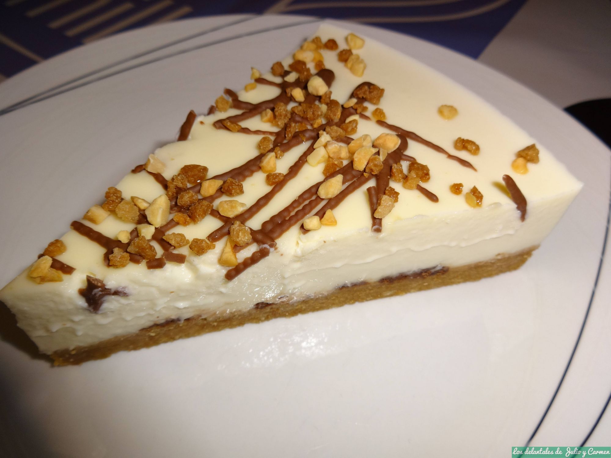 Verteremos la mezcla con cuidado y con una cuchara, sobre la base que teniamos en la nevera (siempre y cuando el chocolate negro haya endurecido). Volvemos a dejarlo en la nevera como mínimo 2-3 horas.
