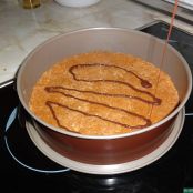 Vertemos sobre el molde y con ayuda de una cuchara, formaremos la base, asegurándonos de que queda bien uniforme por todos lados.