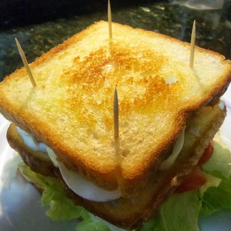 2/ Una vez doradas las rebanadas de pan las sacamos para un plato grande y en una de ellas por la parte que no esté dorado ponemos un poco de mahonesa repartido por todo el pan.