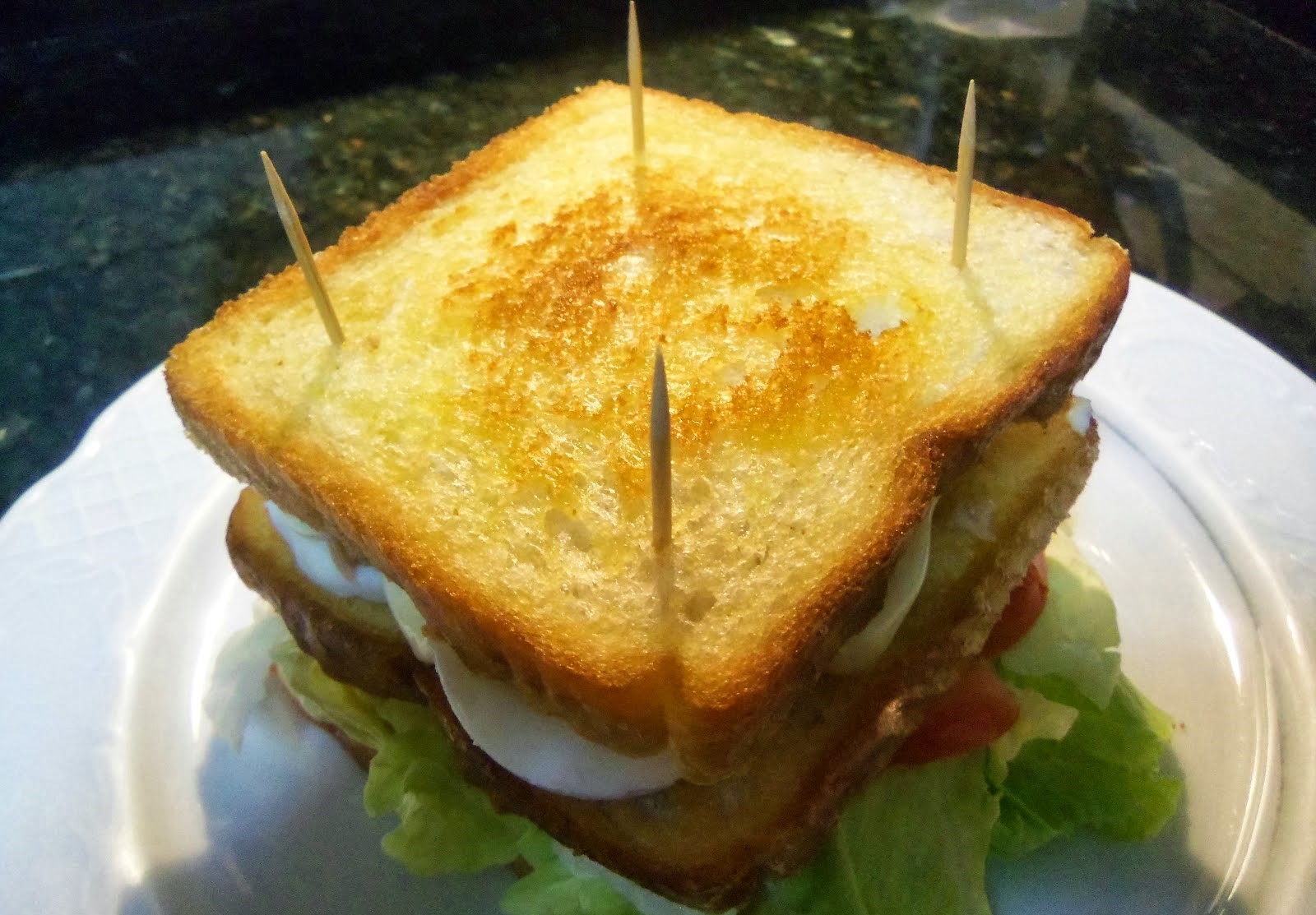 4/ En la primera rebanada donde teníamos la mahonesa repartida por todo el pan colocamos la lechuga, las rodajas de tomate, lo cerramos con una capa de pan por encima y añadimos las rodajas de huevo, el atún ó bonito y un poco de mahonesa para cerrar de nuevo el sandwich con la otra rebanada y finalmente degustarlo.