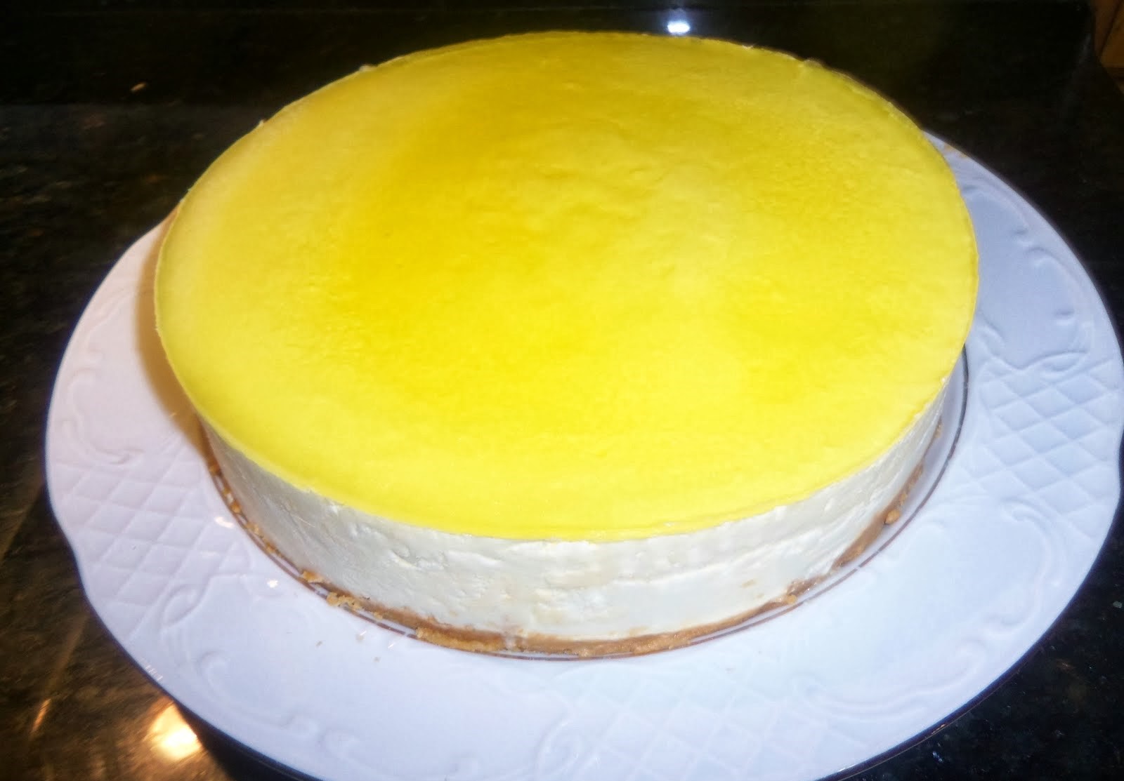 Volcamos la gelatina ya líquida por encima de la tarta, la guardamos en la nevera para que coja de nuevo consistencia y por último la desmoldamos pasándole un cuchillo por los alrededores y la servimos bien fría.