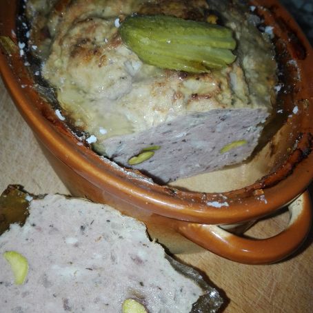Deshuesar el conejo y picar la carne, añadirla a la carne picada de cerdo y agregarle la sal, pimienta, ajo picado, chalota picada, bien de tomillo, los pistachos y el coñac. Mover todo bien para que se incorporen todos los ingredientes.