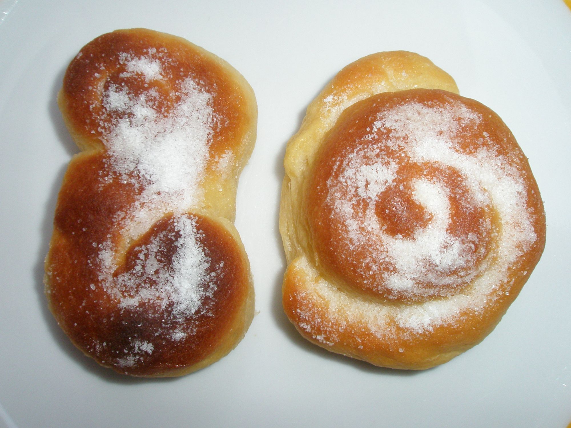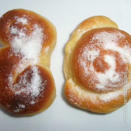 Pasado este tiempo, amasamos un poco la masa y vamos cortando porciones del tamaño de una nuez grande; hacemos un bastoncito con ella y le damos la forma que más nos guste, de caracola o de S y las ponemos en una bandeja de horno sobre papel sulfurizado separándolas unas de otras. Los dejamos reposar hasta que doblen su volumen