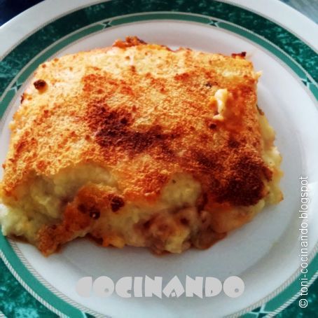 Ponemos las judías en una fuente apta para horno, las cubrimos con el puré de patatas y ponemos por encima de éste, el queso rallado. Metemos la fuente en el horno y gratinamos.