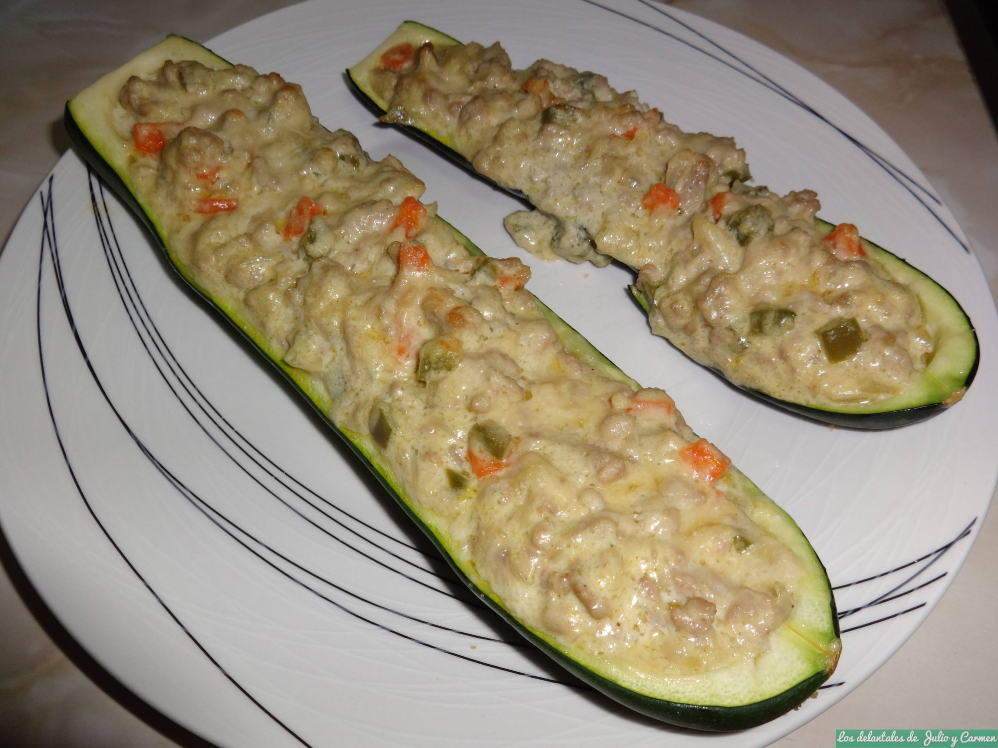 Lavamos los calabacines y los partimos de forma longitudinal, formando 4 "cuencos". Sacamos la carne de los calabacines con un cuchillo o un sacabolas, teniendo cuidado de no romper la piel.