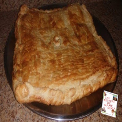 Estiramos 1 de las masas de hojaldre y la ponemos con