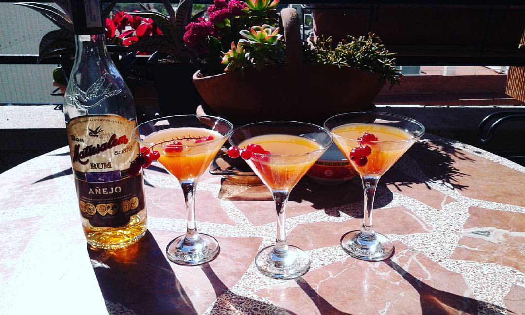 En una cocktelera mezclamos el ron con el zumo cerramos y agitamos, hasta obtener un poquito de espuma.
