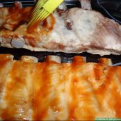 Pasados de nuevo los 10 minutos, abrimos el horno y con cuidado y ayuda de unas pinzas, daremos la vuelta a las costillas, pintando esa cara con la salsa.