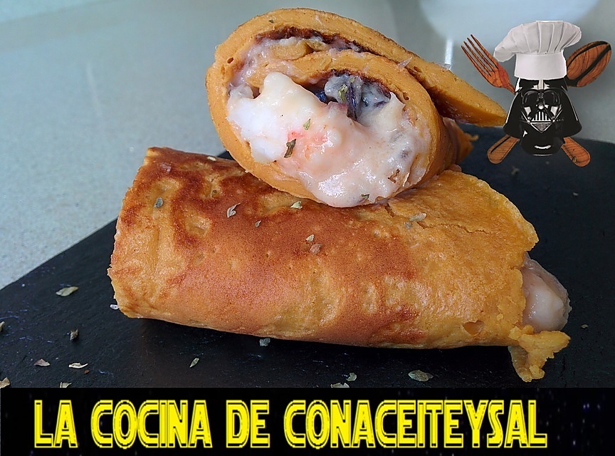 Rellenamos los crepes de gambas con el relleno y disfruten de la buena comida casera.