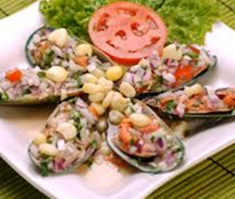 mezclar los demás ingredientes en un boll, agregar la pulpa de los choros, limpiadas y picadas , rectificar la sal y servir en sus conchas.