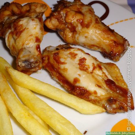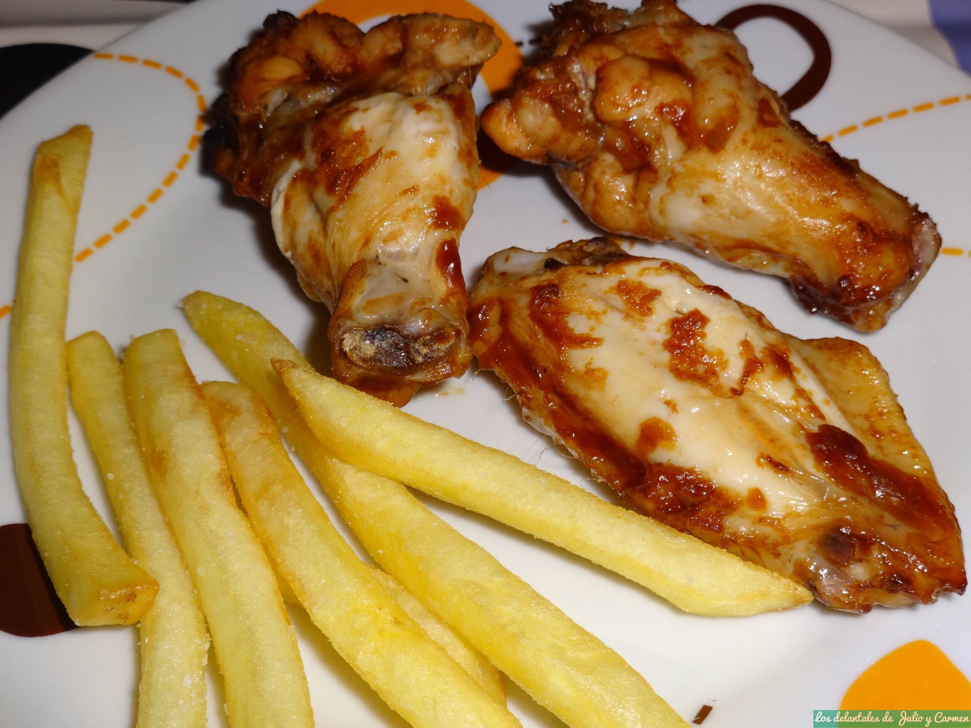 Una hora antes de ponernos a preparar el plato, pondremos las alitas en una fuente y verteremos sobre ellas la salsa, embadurnándolas bien por todos los lados. Las tapamos con papel transparente y las dejaremos en la nevera. Cuando mas tiempo mejor, pero con una hora será suficiente.