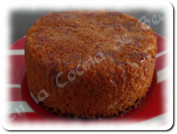 Vertemos la mezcla en el molde, previamente engrasado (yo uso spray desmoldante) y metemos en el horno, precalentado a 170° C, unos 35 minutos o hasta que, al pinchar con un palillo de brocheta salga limpio.