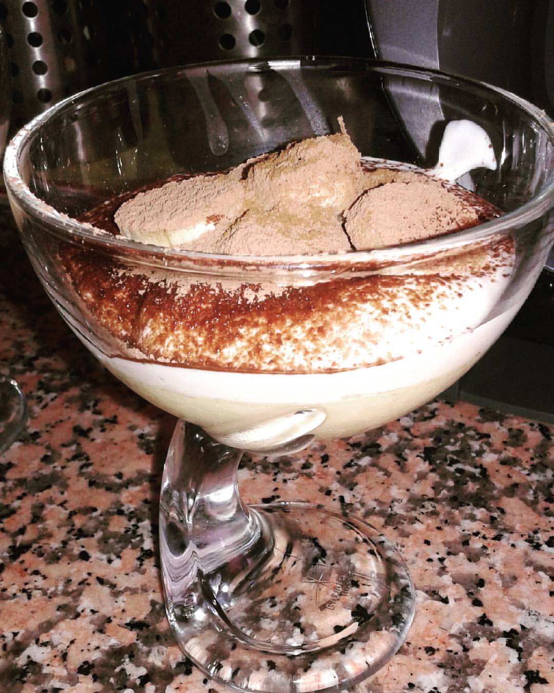Antes de tomar es cuando añadiremos el yogur, extendiéndolo sobre las natillas con cuidado.