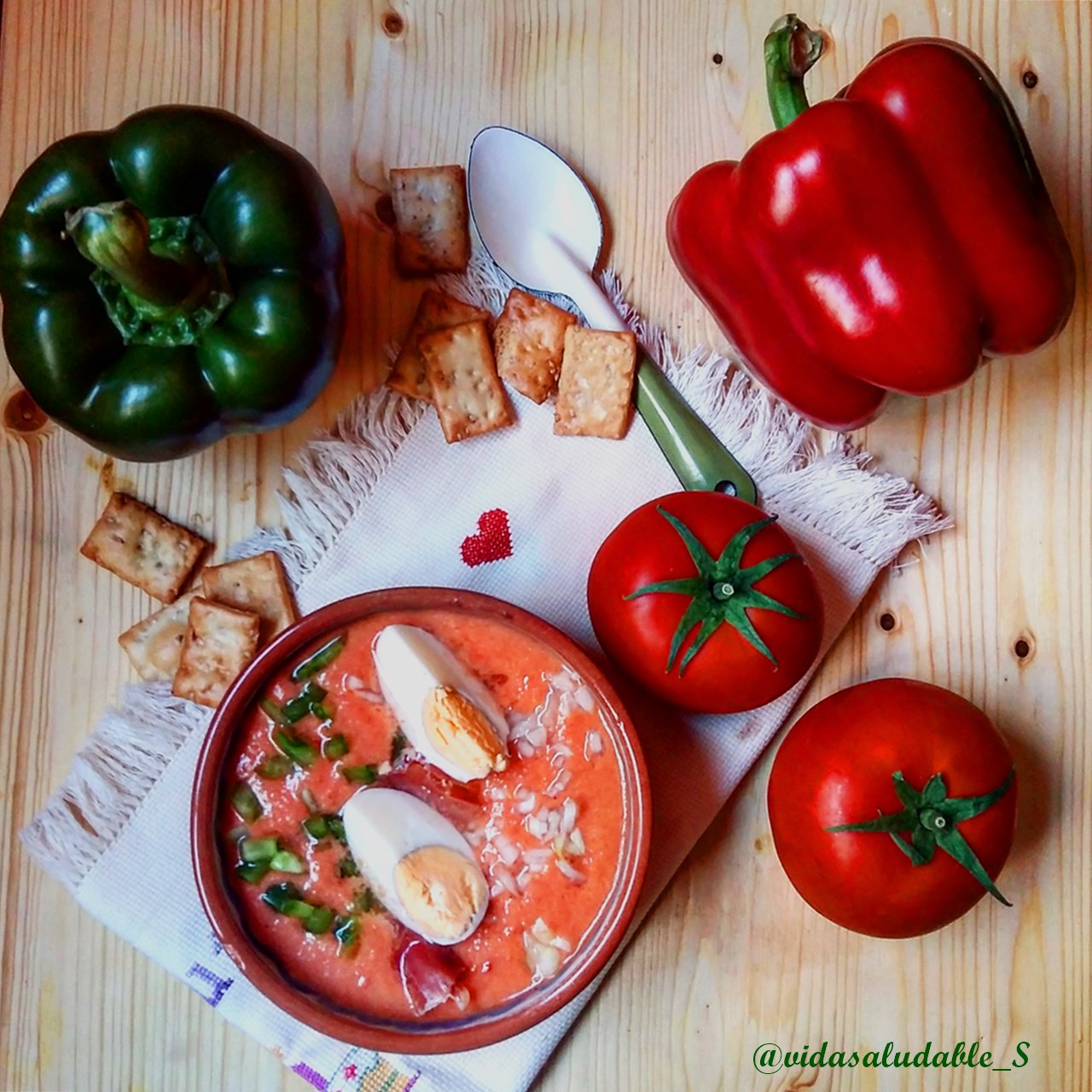 Sugerencias para servir, podéis poner por encima unos tacos de jamón serrano, un huevo duro y cebolla cortada muy pequeñita, pepino y un poco de pimiento rojo.