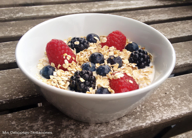 Deliciosa y sencilla forma de empezar el día con lácteos, cereales y frutas en un sólo plato.