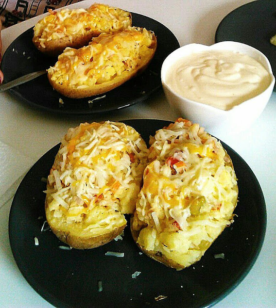 Estas patatas rellenas tienen unos ingredientes y elaboración sencillas, pero resulta un plato que siempre triunfa, y muy vistoso.Se puede preparar con muchos ingredientes que te gusten.