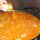 Una vez esté echa la carne, se añade la verdura y el ajo. Aquí hay que tener cuidado que no se queme ni la verdura ni la carne. Con la espumadera se reparten todos los ingredientes. Después de freírlo todo un poco se añade un poco de pimentón y tomate o fritada. Con la espumadera se mezclan y reparten bien todos los ingredientes. Es recomendable seguir un orden determinado al freír la verdura. Normalmente empezamos con la cebolla, seguido por el ajo, la fritada y finalmente las alubias y las judías.