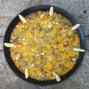Una vez que se haya evaporado todo el agua de la paella, ésta estará casi lista para comer. Se adorna con trozos de limón.
