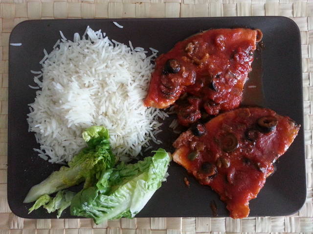 Poner el pescado en una fuente de horno y verter encima la mezcla de aceite, limón y albahaca. Dejar marinando 30 minutos.
