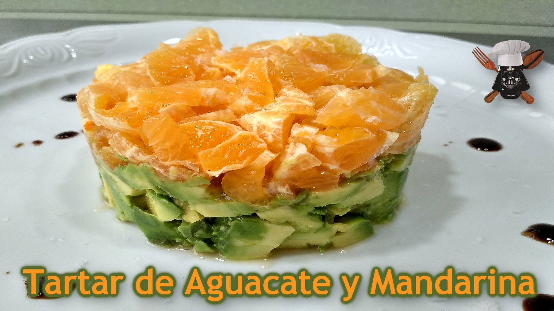 Encima del aguacate añadimos la mandarina y para potenciar el sabor pondremos en el plato unas gotas de vinagre balsámico y un poco de sal en escamas Es sorprendente como estos dos ingredientes tan distintos tienen una combinación perfecta, no necesitan nada más, solo que te animes y compruebes por ti mismo lo bueno que esta este Tartar "Vegano-Vegetariano-Saludable"