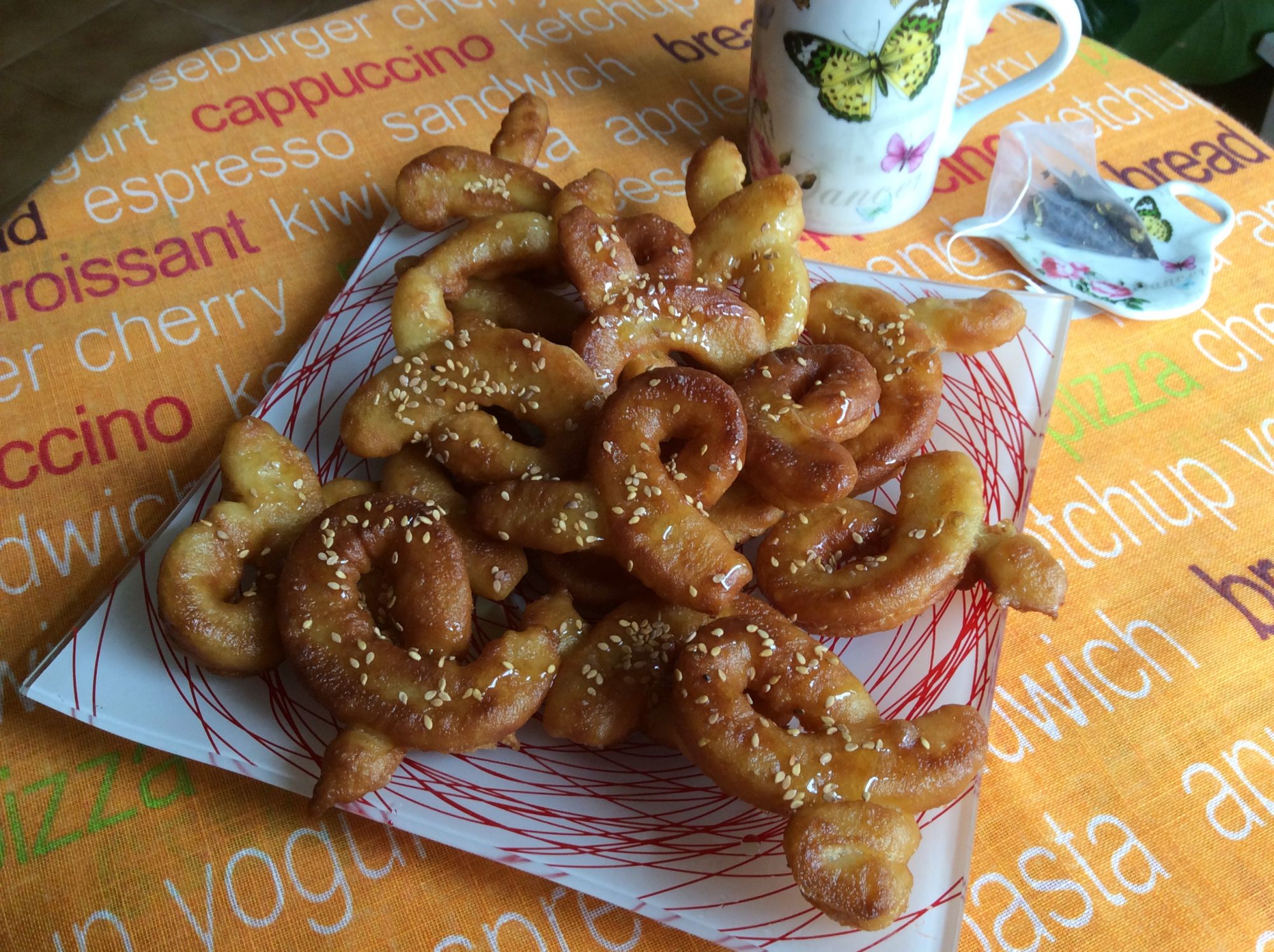 Poner aceite a calentar y freir los Zeppole hasta que estén dorados. Dejar enfriar antes de espolvorear con azúcar glas o con miel muy líquida y sésamo como en este caso.