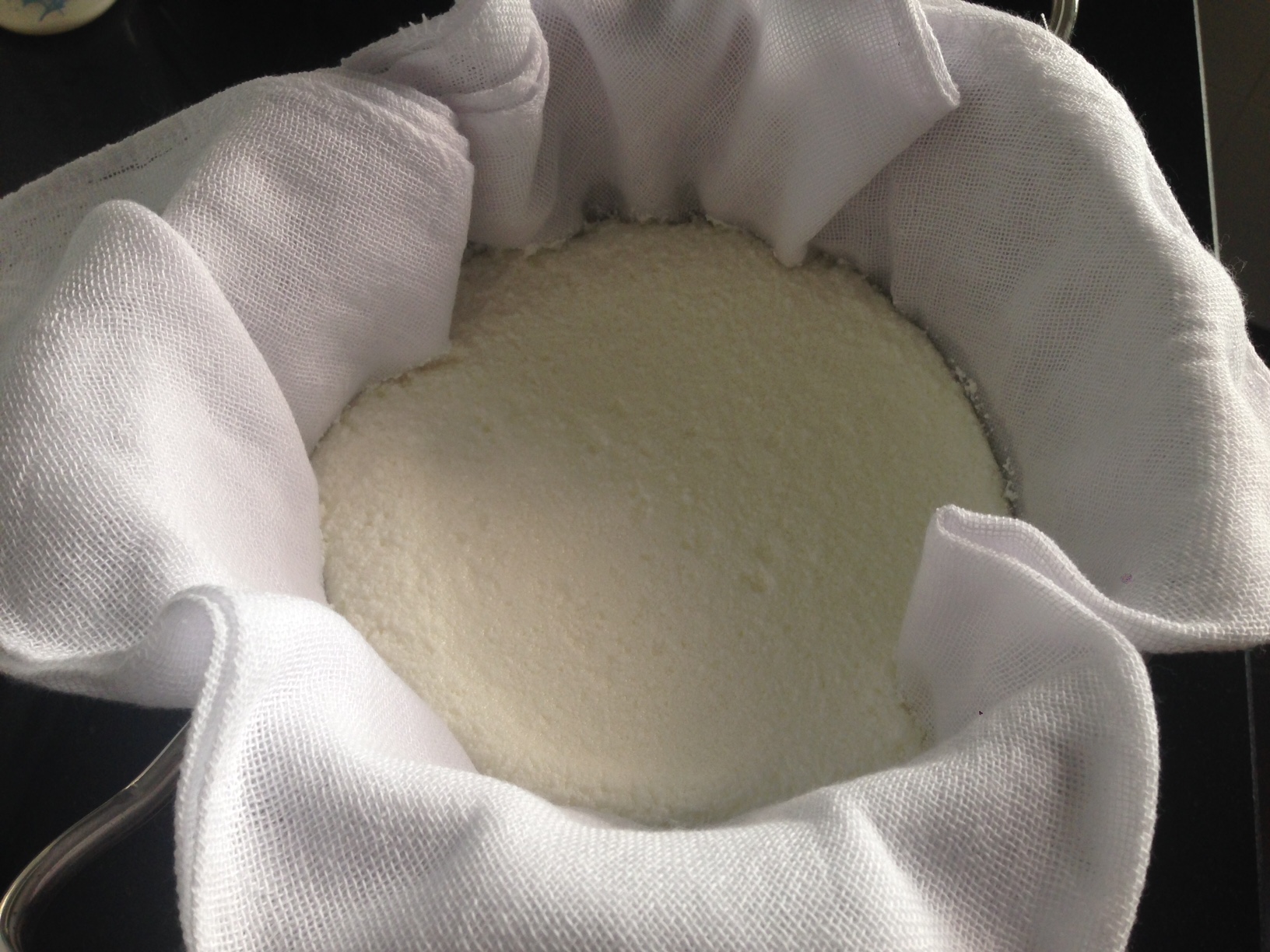 2.-Déjalo reposar unas 12 horas escurriendo con la tela sobre un colador.