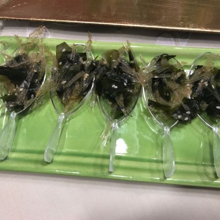 En truco es encontrar el equilibrio del sabor fuerte del wakame con el neutro del Agar y darle el towue dulce con la miel y la soja.