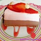 Esta tarta de mousse me ha quedado deliciosa!!! Fresquita con dos suaves sabores, chocolate y fresa. Muy fácil de preparar, sin horno. Ideal para este tiempo primaveral. Os la recomiendo!!!