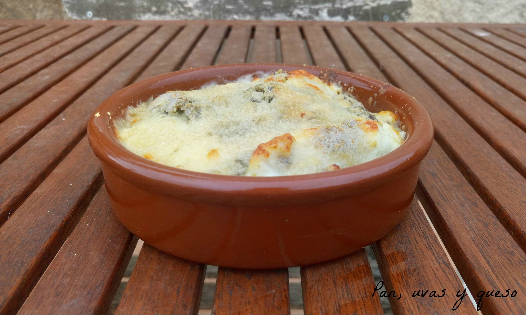 Mientras reposan, preparamos la salsa: en un cazo calentamos la nata junto con el queso de untar. Cuando rompa a hervir añadimos el Cabrales. Removemos con unas barillas hasta que se funda totalmente.