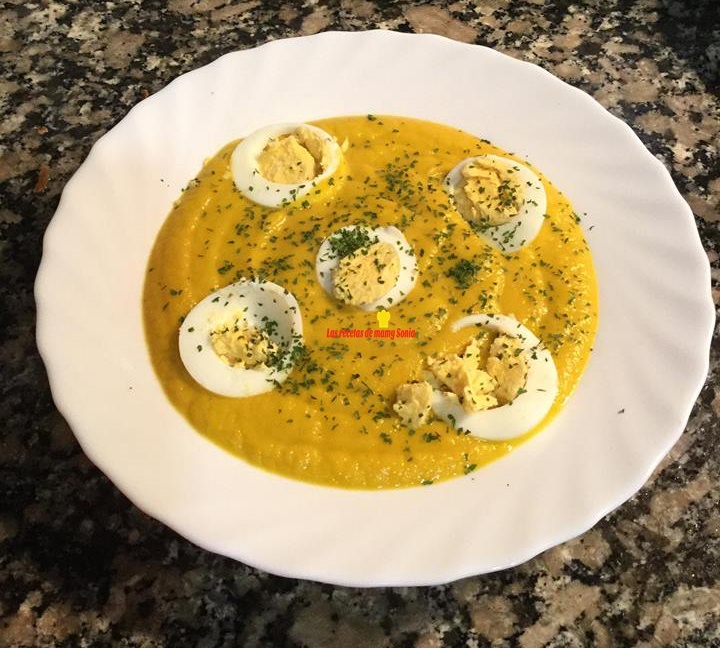 Cuando tengamos todo rehogado añadimos la pastilla de caldo y ponemos agua o el caldo de verduras y dejamos todo cocer una media hora.