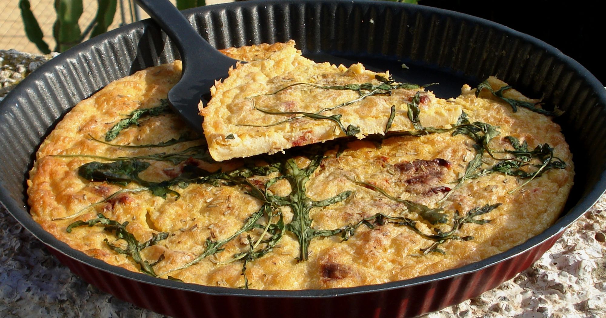 Farinata con la rucola e pomodorini secchi (sin lácteos, sin glúten)