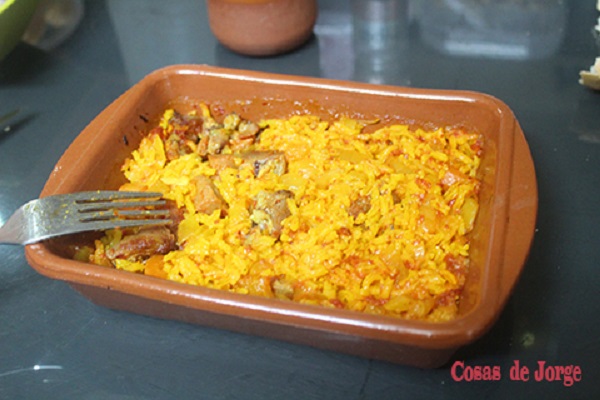 El otro día viendo una receta de la estupenda web de “La cocina de Loli Domínguez” recode que hacía tiempo que no comíamos arroz en casa y aun mucho más tiempo que no lo cocinaba al horno, aunque mi versión solo se parece a la de Loli en que tiene arroz, la idea para realizarla me la proporciono ella con su receta de “Arroz al horno (receta típica valenciana)”.