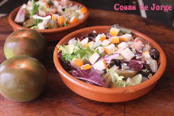 Añadimos vinagre y aceite de oliva al gusto y removemos bien.