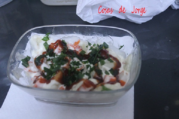 Cubrimos ambos ingredientes con mayonesa y mezclamos.