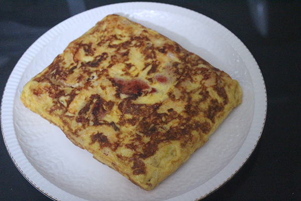 Con la ayuda de una tapadera le damos todas las vueltas que consideremos necesarias hasta que este terminada nuestra tortilla cuadrada de sobras.
