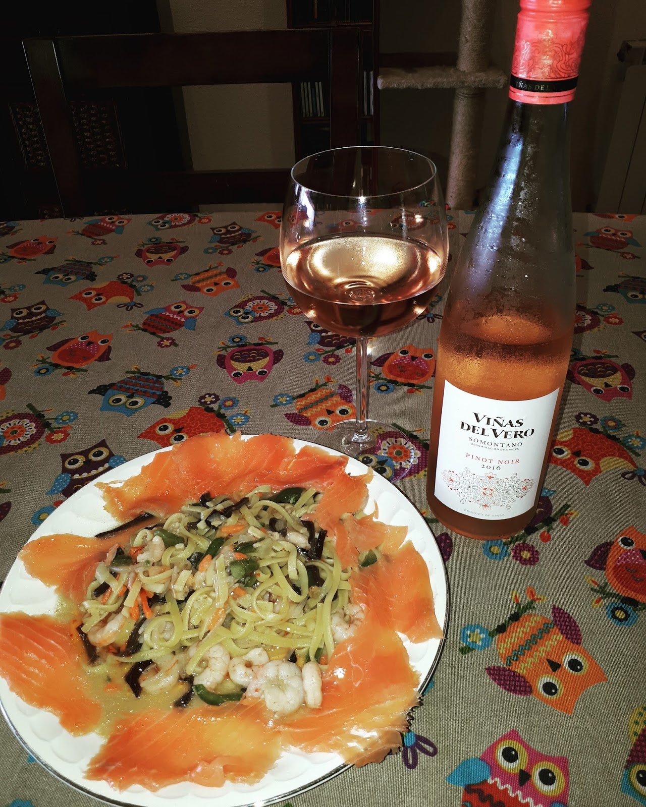 Pasta oriental con salmón ahumado