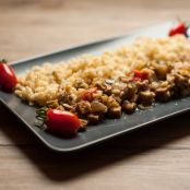 Verduritas de temporada con seitan y bulgur