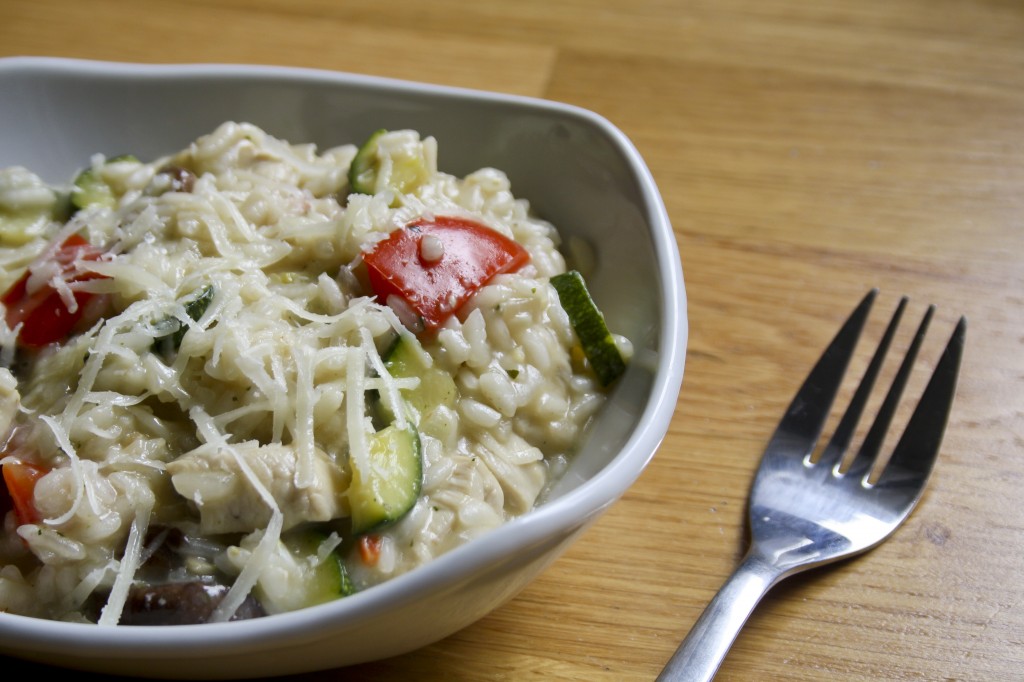 Risotto de pollo y verduras