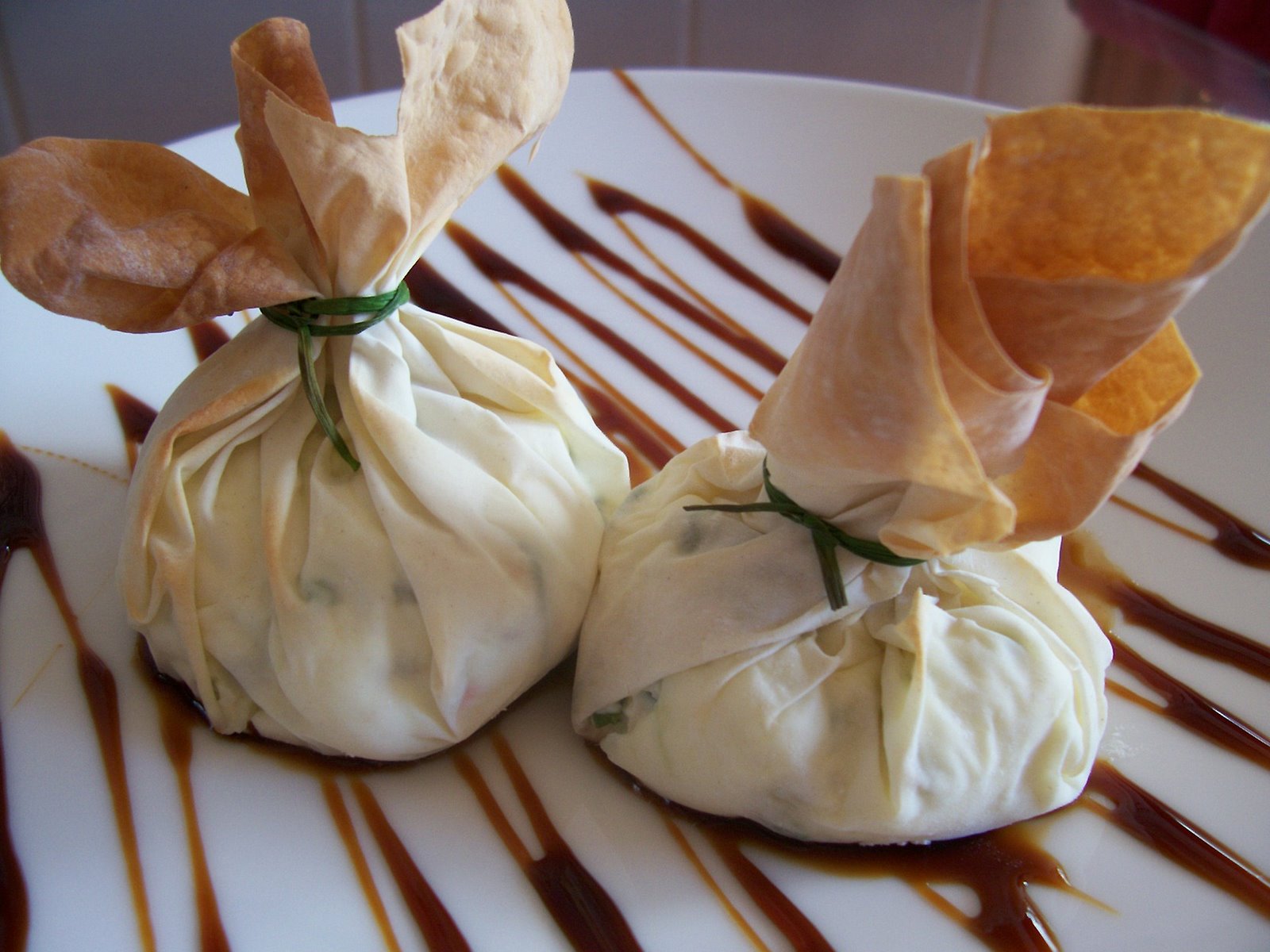 Unos deliciosos saquitos de gambas hechos con pasta filo
