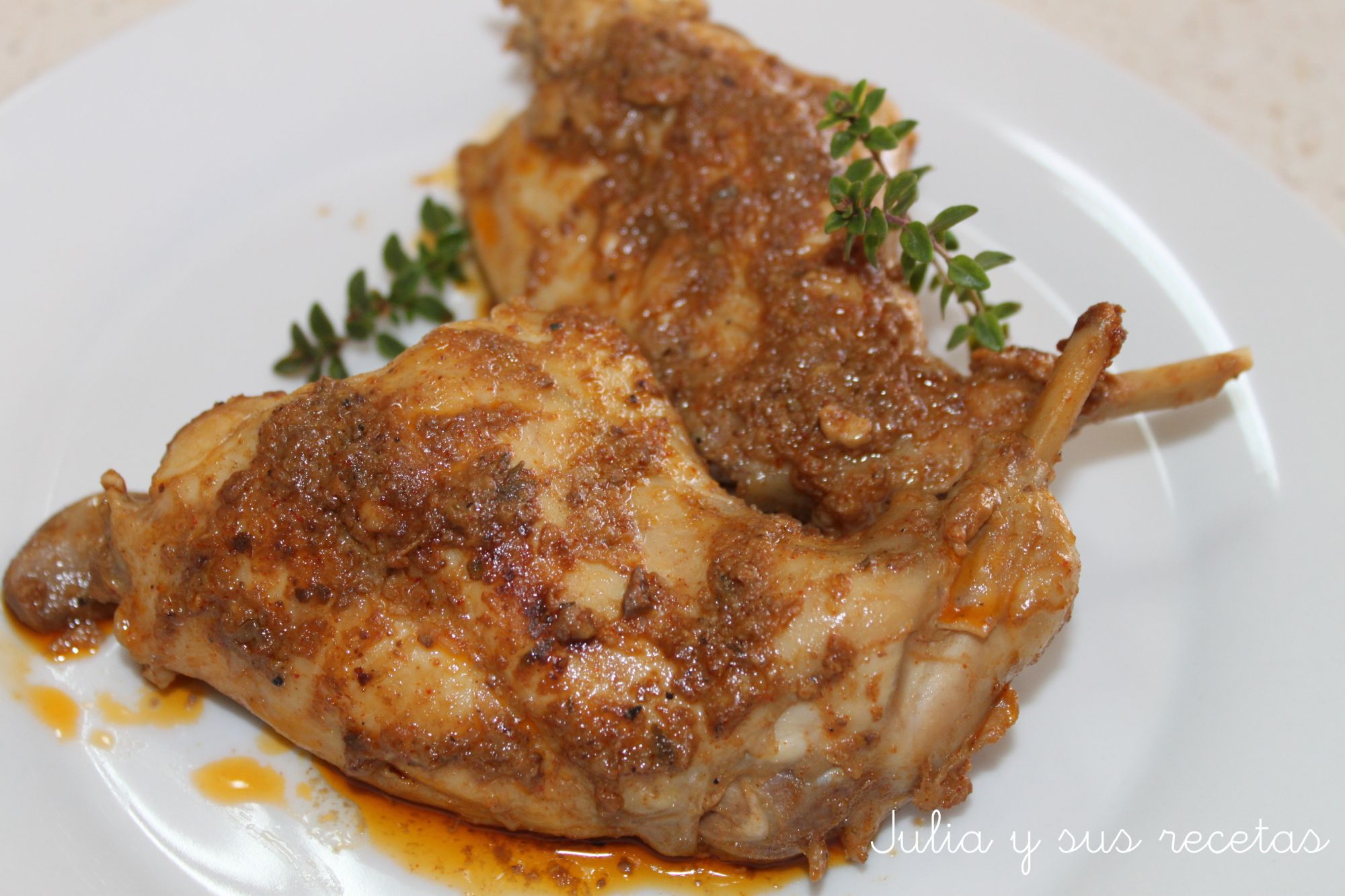 Un guiso de conejo con una salsa deliciosa