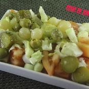 Ensalada de aguacate con gambas y estrellas de pepino y queso