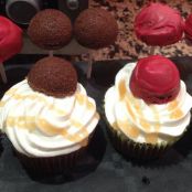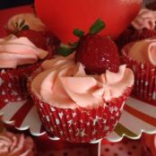 Unos cupcakes de fresas decorados con una boquilla de petalo
